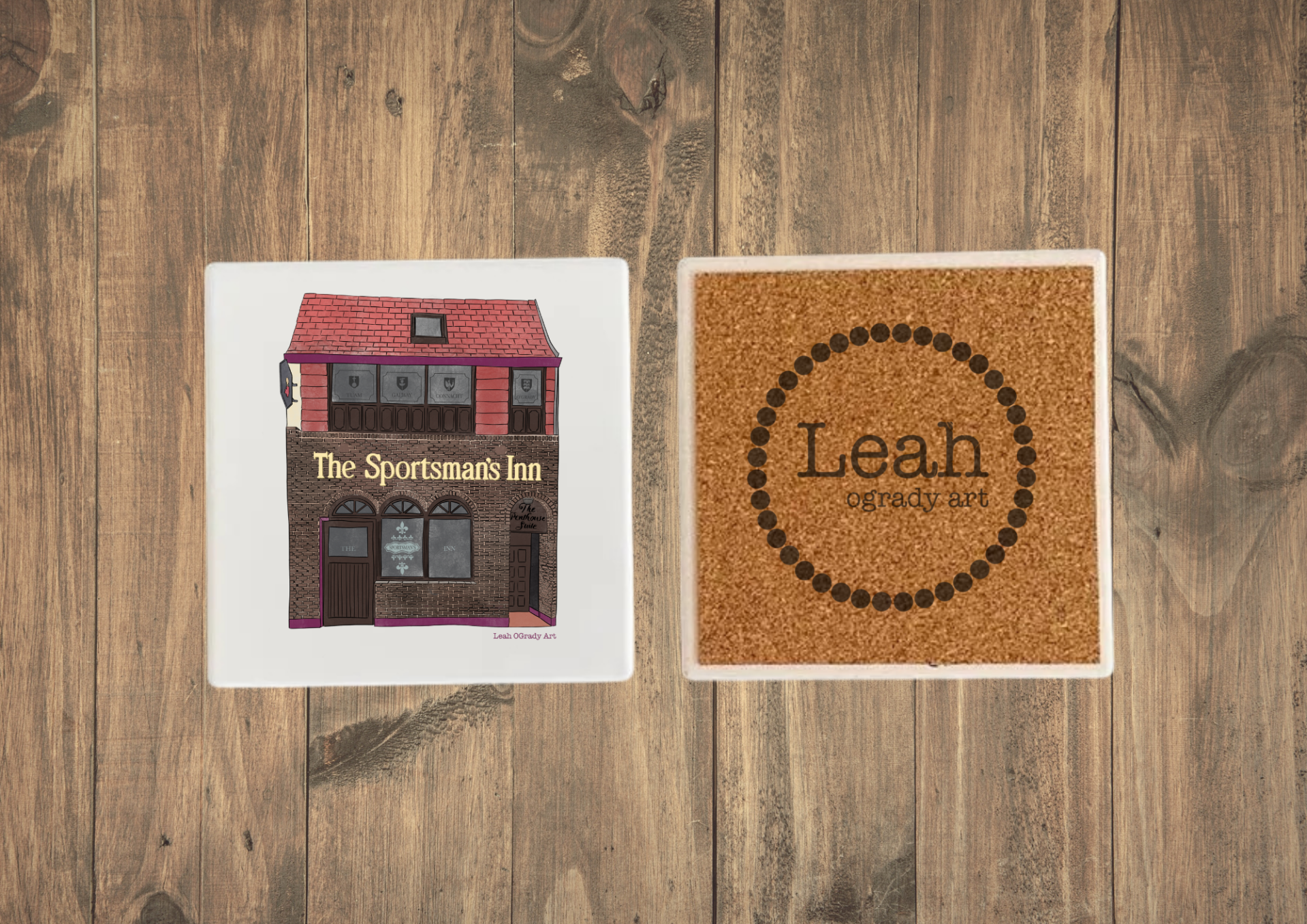 - Cork Backing Stamped with Leah OGrady Arts Logo.
