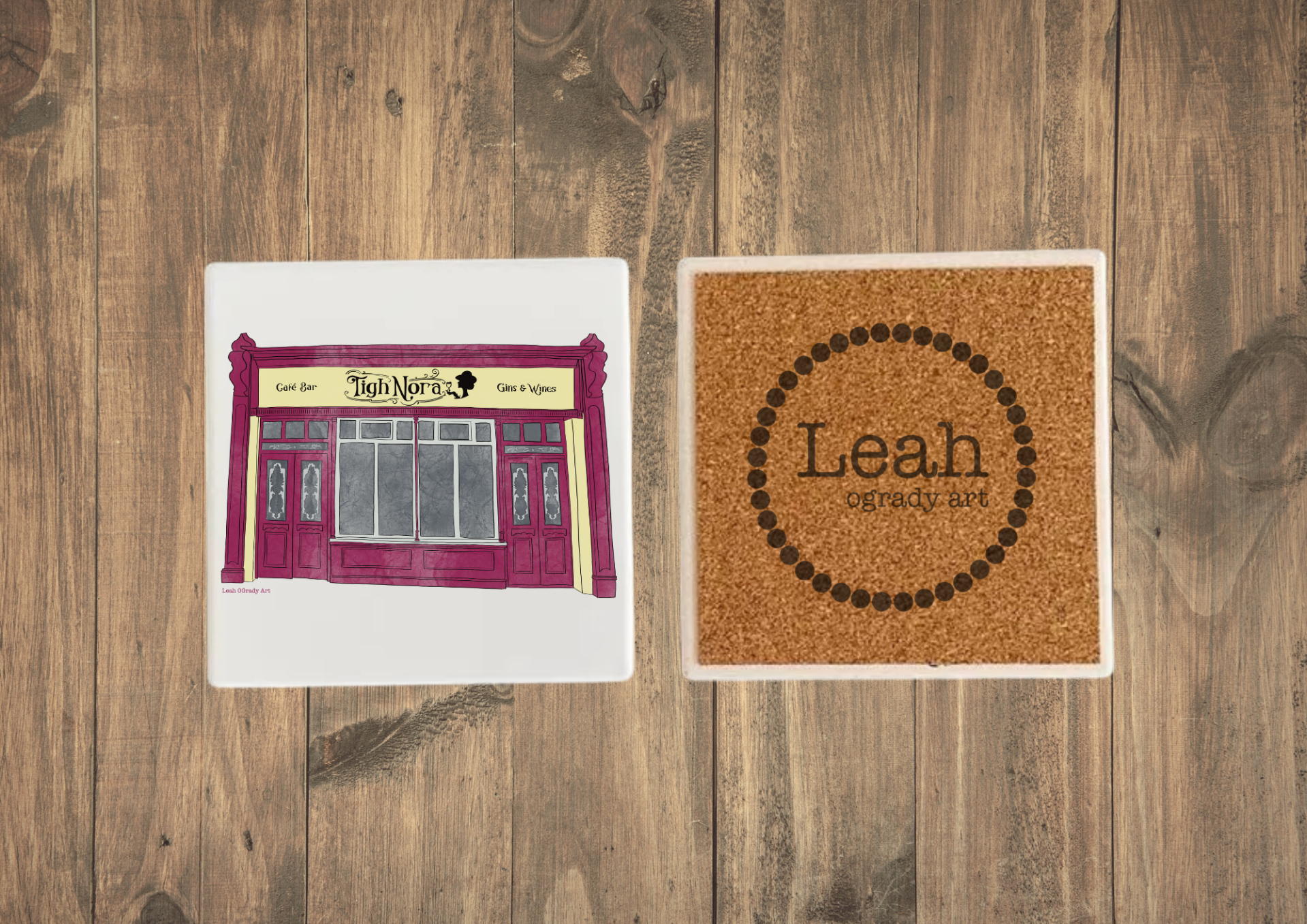 - Cork Backing Stamped with Leah OGrady Arts Logo.
