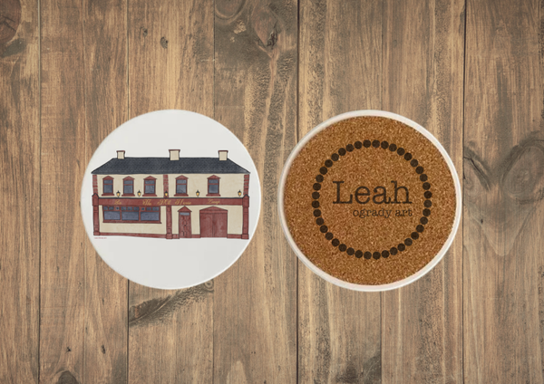 - Cork Backing Stamped with Leah OGrady Arts Logo.