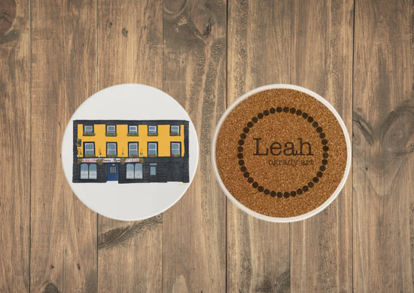 - Cork Backing Stamped with Leah OGrady Arts Logo.