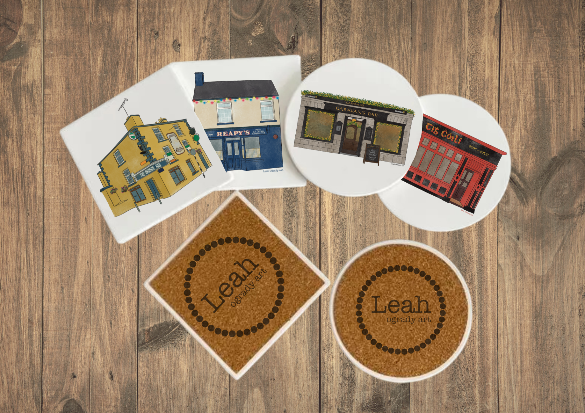 - Cork Backing Stamped with Leah OGrady Arts Logo.